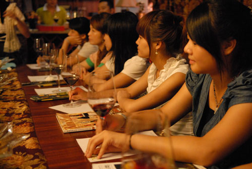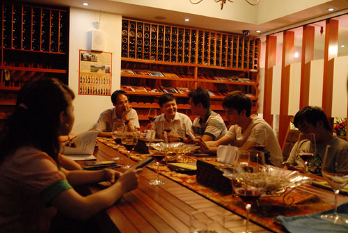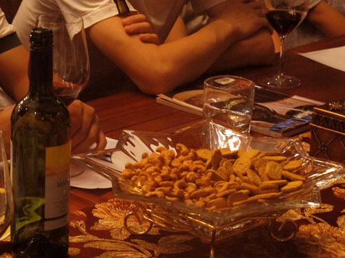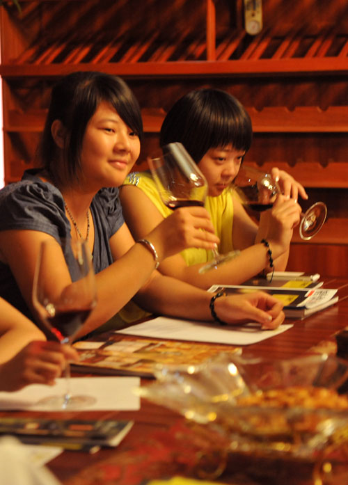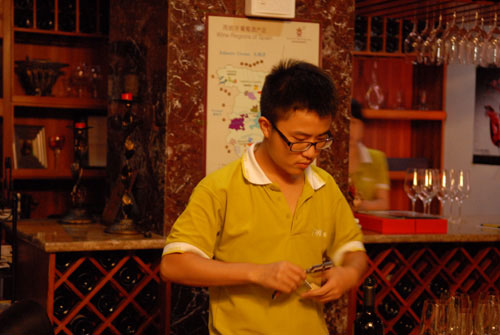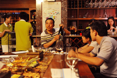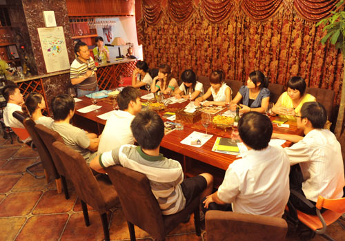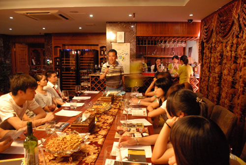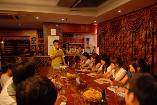 暗黃色的燈光,歐式風格的落地窗簾,充滿古典與時尚味的吧臺,以及一支支遠渡重洋,混合著西班牙熱情、散發(fā)著獨特幽香的葡萄酒美釀。在這個極具異域風情和溫馨別致的“納新紅酒匯”里,有來自我公司的3位專業(yè)品酒師、紅酒代理商以及各紅酒愛好者們匯聚一堂,共同拉開了我公司每周五下午免費"納新.西班牙葡萄酒品鑒會"的帷幕。
