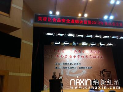 為進一步普及食品安全知識,增強人民群眾的自我保護能力,提高食品生產經營者的法律意識、誠信意識和主體責任意識。由長沙市芙蓉區(qū)委、區(qū)政府主辦,芙蓉區(qū)文明辦、芙蓉區(qū)食安辦承辦的《芙蓉區(qū)食品安全道德講堂暨2013年食品安全宣傳周啟動儀式》在芙蓉區(qū)政府會議大廳如期舉行,納新紅酒作為芙蓉區(qū)的食品流通領域企業(yè)有幸參加了此次會議。