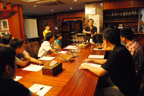 在品酒的過程中,我公司品酒師龐驚宇先生就品酒過程中的一些注意事項(xiàng)、一些品酒誤區(qū),以及正確的品酒步驟和品酒方式以實(shí)踐的形式精致的展示出來(lái)?;顒?dòng)在輕松活潑的氛圍中展開,大家就品酒的一些問題與疑問向品酒師尋求解答。品酒師幽默風(fēng)趣的回答,讓在座各位輕松記住了葡萄酒的相關(guān)文化,也提升了大家對(duì)葡萄酒的興趣。