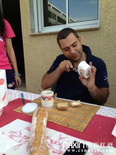 托馬餓了,開始親自做土司,涂些么子漿呀!