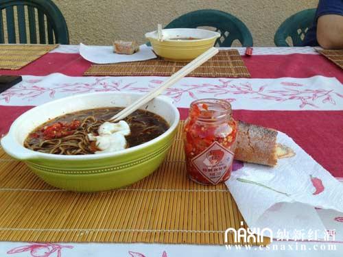 巴黎時間7月11日早上,陽光甚好,做客托馬家,好香的法式面包加一碗湯面,再配上剁辣椒,絕味??!