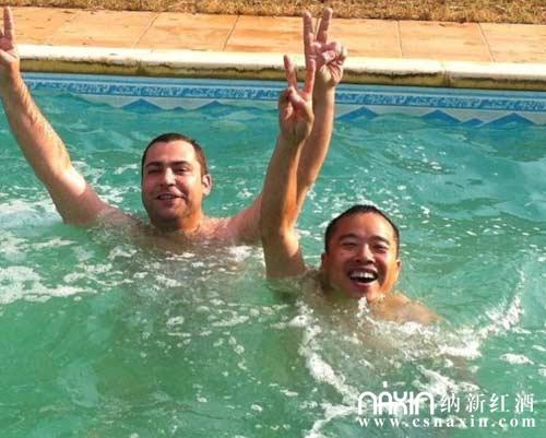 海邊剛喝完不久,回到托馬家,又繼續(xù)喝雞尾酒,我們是有多強大,不過味道還是不錯!順便在他們家的私家游池里涼爽一下!