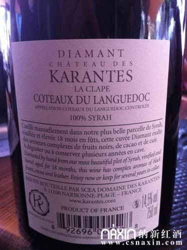 陽光暖暖,海水湛藍,海風怡人,幾個人圍坐在一起開始地中海邊的小型品酒咯!以下這款是卡蘭特城堡高端酒,叫鉆石,全部由一塊形似鉆石的葡萄園所產(chǎn)葡萄來釀制。橡木桶18個月。這瓶由2007年的葡萄釀成,當年產(chǎn)量1257瓶,這瓶編號776。開始品鑒了。