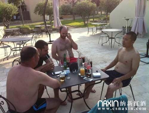 4大赤膊男,呵呵,桌上的飲料品類真多呀!