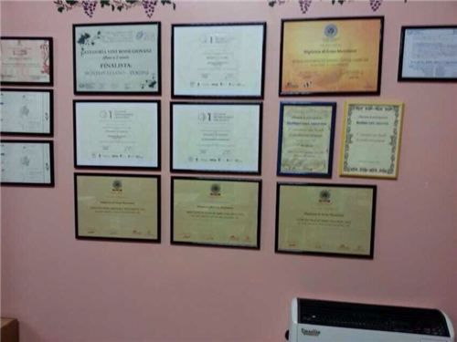 塔莊是一家私人小型精品莊,莊主是多米尼卡,釀酒師是之前提到的Festa。半墻的獲獎證書,多米尼卡說還有不少沒擺。