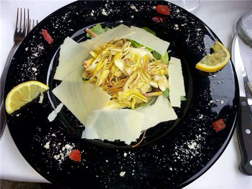 來到艾米莉亞,當然要吃據(jù)說110升牛奶只能做出1公斤的帕爾馬芝士Parmigiano,頭盤帕爾馬芝士和洋薊Articho