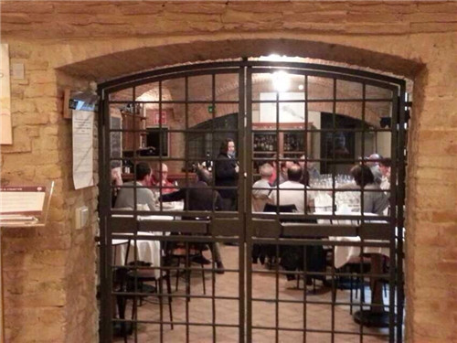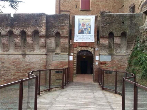 車停在山腰,冒雨上到山頂?shù)囊患也蛷d,正對著一座叫詩湖札的古堡,艾米莉亞-羅馬涅酒協(xié)就設在里面。