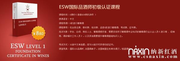 880元/人(包括報(bào)名費(fèi)、ESW初級(jí)教材費(fèi)、培訓(xùn)費(fèi)、品嘗8款進(jìn)口葡萄酒、考試費(fèi)、中餐費(fèi)、證書(shū)費(fèi))。