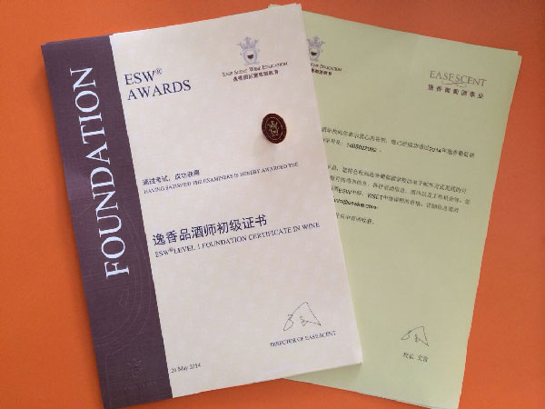 2014年7月12日,經(jīng)過長(zhǎng)沙納新紅酒&逸香葡萄酒教育機(jī)構(gòu)的培訓(xùn)及嚴(yán)格考試,以下學(xué)員成功獲得ESW初級(jí)品酒師認(rèn)證證書: