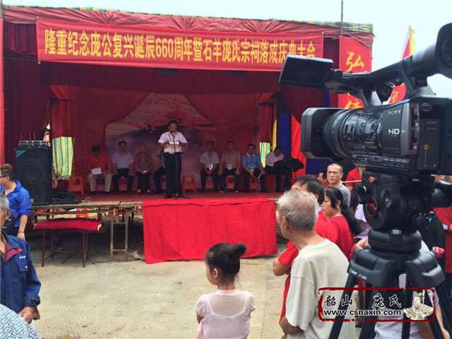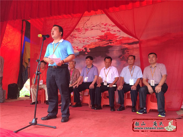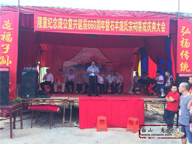 慶典活動總指揮龐正明正在發(fā)言,感謝為祠堂辛勤付出勞力財力等等的龐氏宗親,感恩每一份力量。