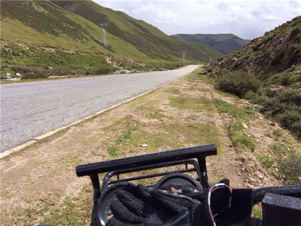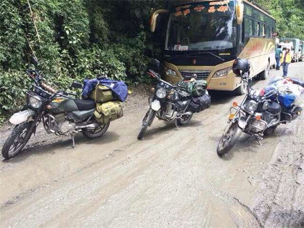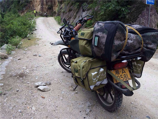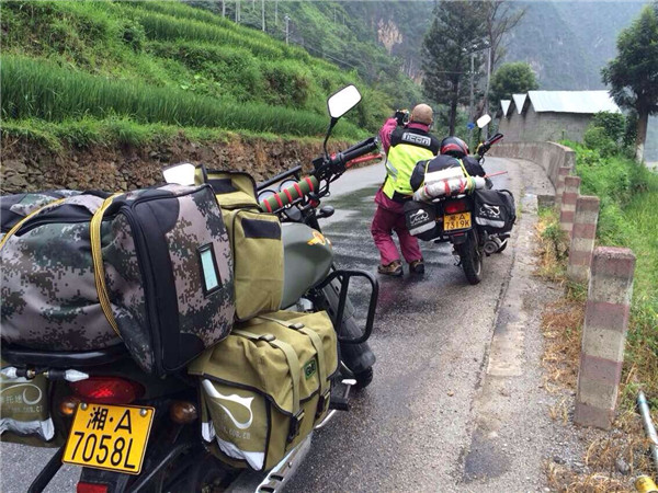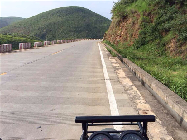 我承認(rèn),我對(duì)自己能力估計(jì)不足。我是個(gè)很自信的人,喜歡用行動(dòng)去思考問題,有了想法,就要盡快去實(shí)現(xiàn),不管有什么困難,先往前沖了再說。這次,就吃了不少苦頭。我右肘關(guān)節(jié)一直疼痛,這次貼了膏藥出發(fā),平時(shí)不用力還好,可騎車就靠得臂力了。這下好,遇到需要強(qiáng)力控制方向把時(shí)痛得我直咬牙。車輛側(cè)傾時(shí)便無力扶住車,倒車有六七次之多,全部發(fā)生在陡坡或打滑的路上??梢哉f是一路摔出丙察察。
