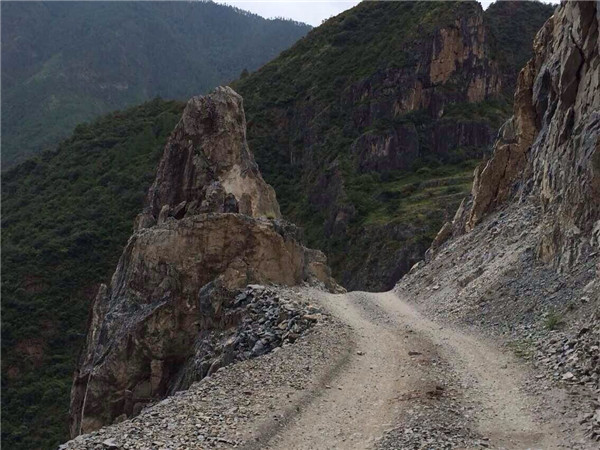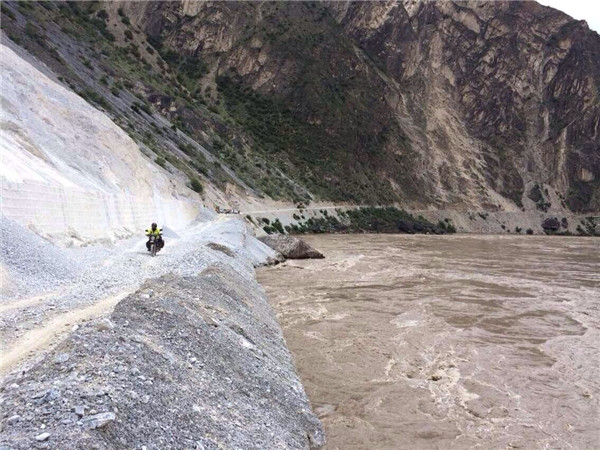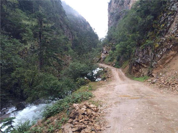 我承認(rèn),我對(duì)線路的艱險(xiǎn)嚴(yán)重估計(jì)不足。兩輪摩托的穩(wěn)定性比汽車差太多了,無論剎車、方向、爬坡能力都與汽車不可比擬,在懸崖邊上騎行,一個(gè)小小的操作失誤就可能鑄成重大事故。從察瓦龍到鋸木場(chǎng),我汗透了四套內(nèi)衣,高度緊張是主要原因。