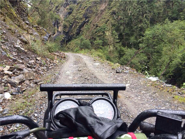 我承認(rèn),我對(duì)天氣的惡劣嚴(yán)重估計(jì)不足。高山寒冷,也就幾度的溫度,風(fēng)吹雨淋,加上裝備不完善,涉水使雙腳進(jìn)水,而雨水則順著脖子往下流,導(dǎo)致內(nèi)衣濕透,一身的泥巴,一身的雨水。惡劣的天氣導(dǎo)致駕駛技術(shù)走樣,風(fēng)險(xiǎn)陡增。當(dāng)時(shí)我在想:坐在辦公室泡杯茶多舒服啊。