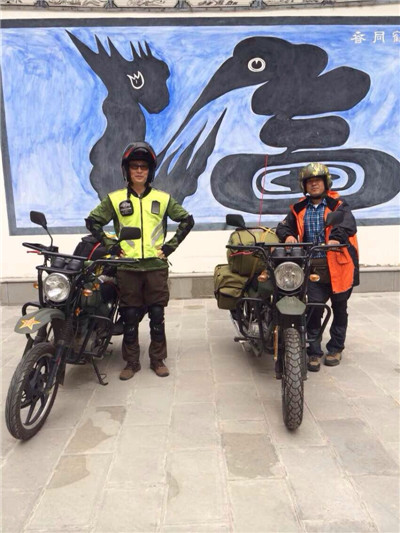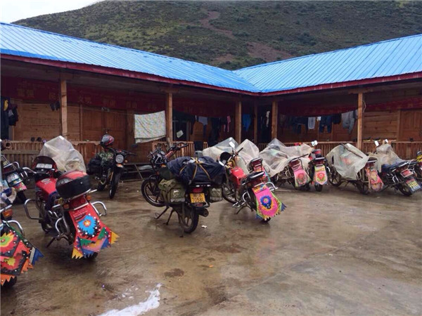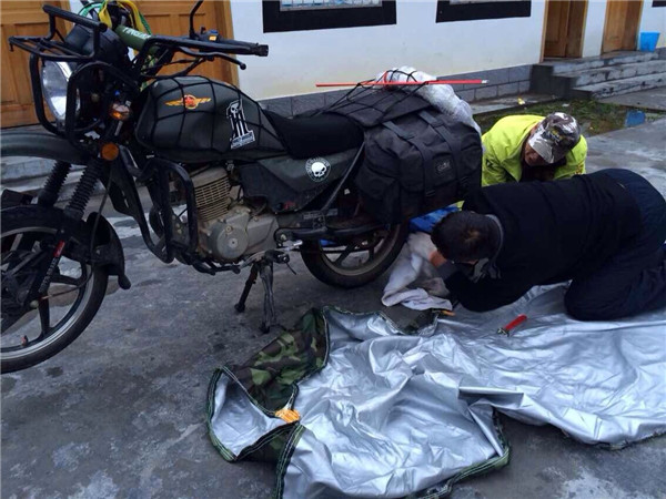 客棧偶遇北京摩友老周單騎進(jìn)藏,熱情幫我們調(diào)鏈條。好松了啊,虧得老周了。我們只知道騎,別的哈不懂。明天,我們?nèi)送邢蚶_挺進(jìn)。