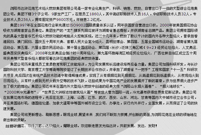 瀏陽市達(dá)滸花炮藝術(shù)焰火燃放集團(tuán)有限公司