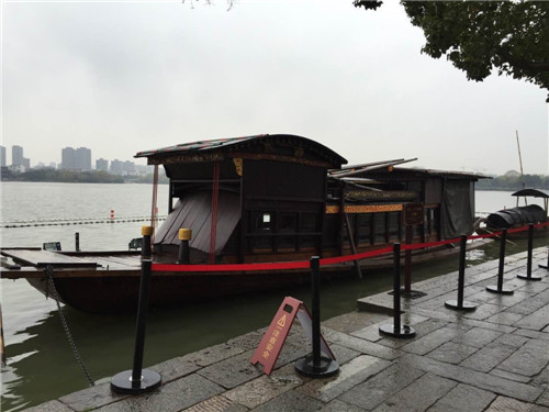 這是一艘中型的單夾弄絲網船,船長16米,寬3米。內有前艙,中艙,房艙和后艙,右邊有一條夾弄通道,中艙放一張八仙桌,周圍放桌凳和茶幾。當年中共“一大”會議就是在中艙舉行。
