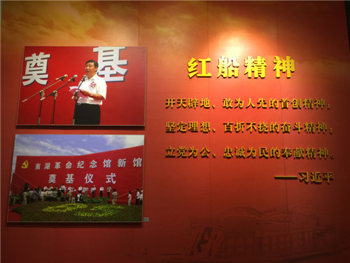 紀念館占地面積3800平方米,建筑面積1980平方米。整座建筑造型新穎,從空中俯視猶如一個碩大的黨徽,紀念館一樓陳列的是黨和國家領導人在嘉興參觀、視察的照片以及為革命紀念館所寫的題詞,二樓展廳是中共“一大”史料陳列。