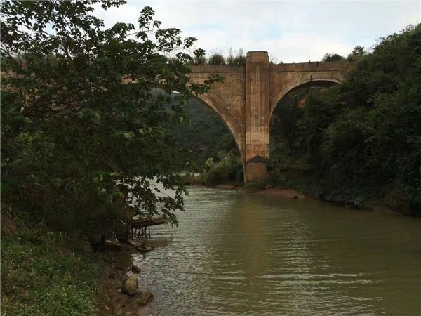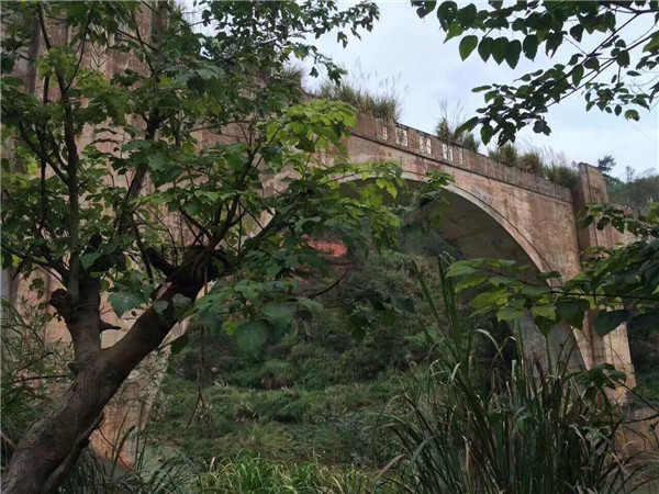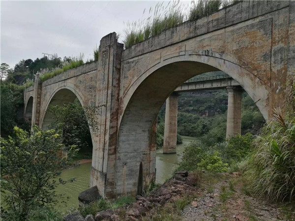 鐵路橋梁寬為6米,高均為50余米,橋?yàn)槿?,高大聳立,氣?shì)磅礴,偉岸壯觀,橫跨在崇山峻嶺之間的白沙河兩岸山崖之上,人站橋舷則頭暈眼花,令人心悸。