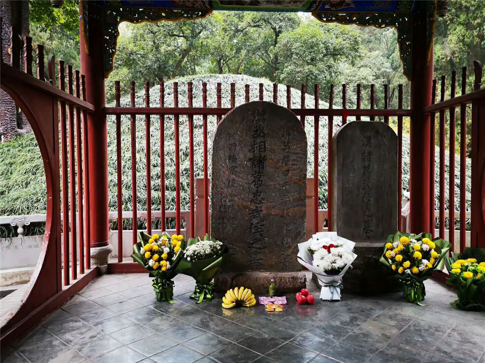 建興十二年(234年)八月,諸葛亮病故于五丈原(寶雞境內),享年五十四歲,遺言命令部下將自己葬在漢中定軍山,依山勢修建墳墓,墓穴僅能容納下棺材,穿平時的衣服入殮,不必用其他器物殉葬。遂歸葬勉縣定軍山腳下武侯墓。