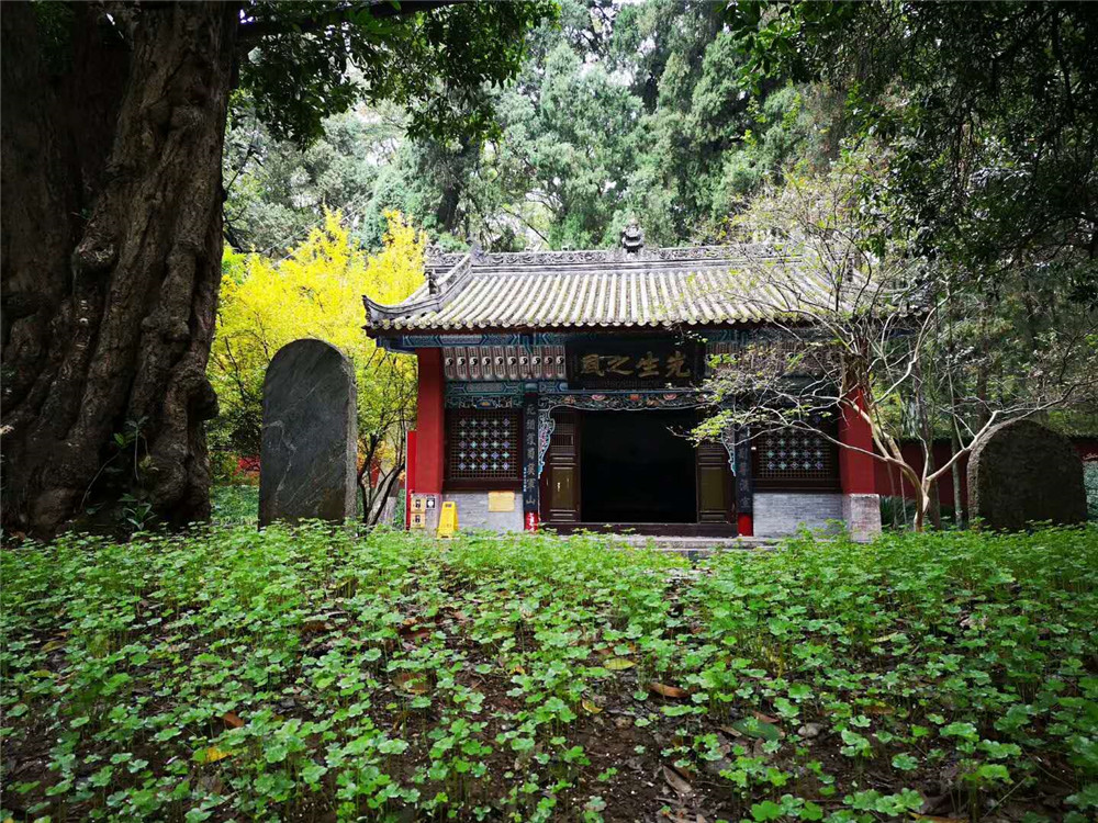 圖五:諸葛亮的墳前有兩塊石碑屹立,稍大的一塊由當時陜西的巡撫所立,稍小的一塊是雍正年間,雍正的十七弟果親王所立,碑身有龍紋輝映。