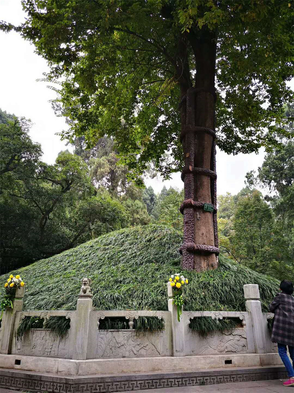 圖八圖九傳說:每一個到了墓前的游客都會發(fā)現(xiàn)一個奇怪的事情,墓地頂上居然長出了一顆高大的黃果樹,因此后人就展開了聯(lián)想,認為這是諸葛亮的妻子黃阿丑對丈夫的一片真心,便化身為一棵黃果樹,在心愛的丈夫的墓上,為他遮風擋雨,庇護著他。