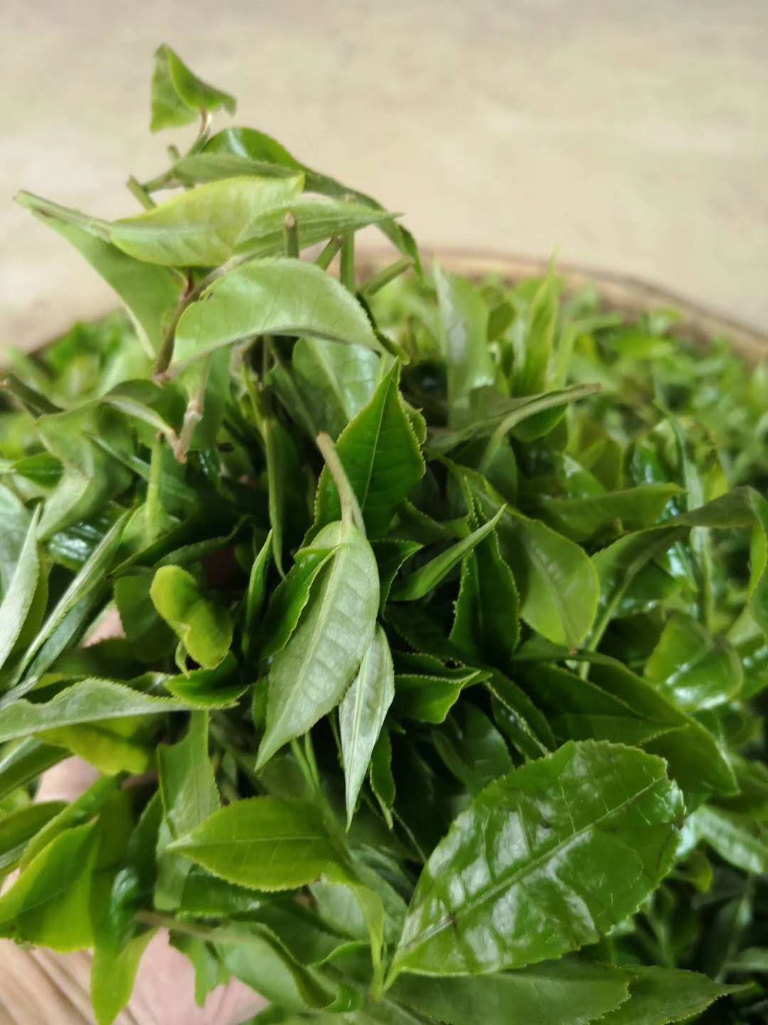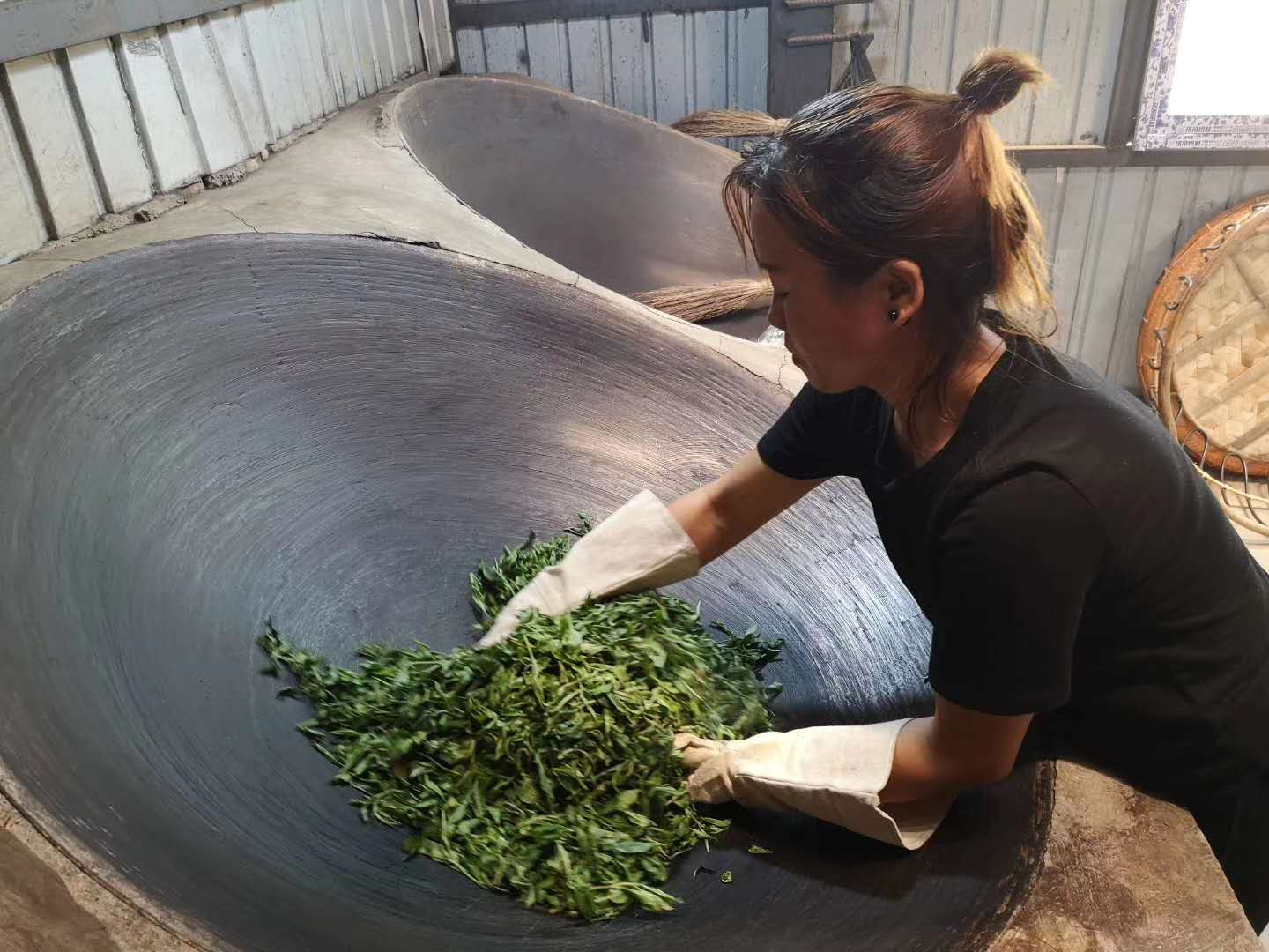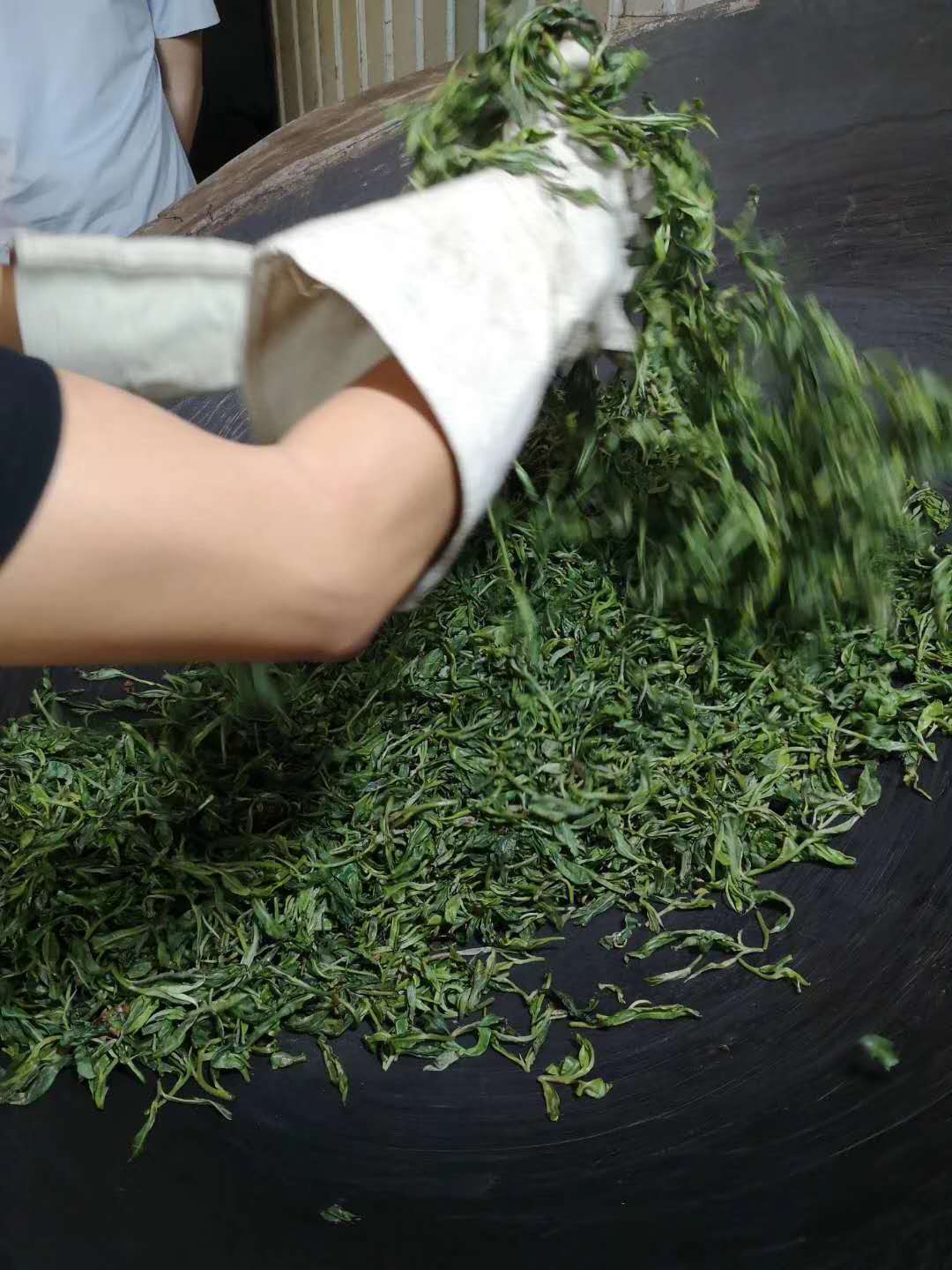 就這片古茶林,今天只采了八公斤左右鮮葉,炒兩鍋,由那英炒茶,王廠長揉捻,這可是納新茶業(yè)的珍品哈!