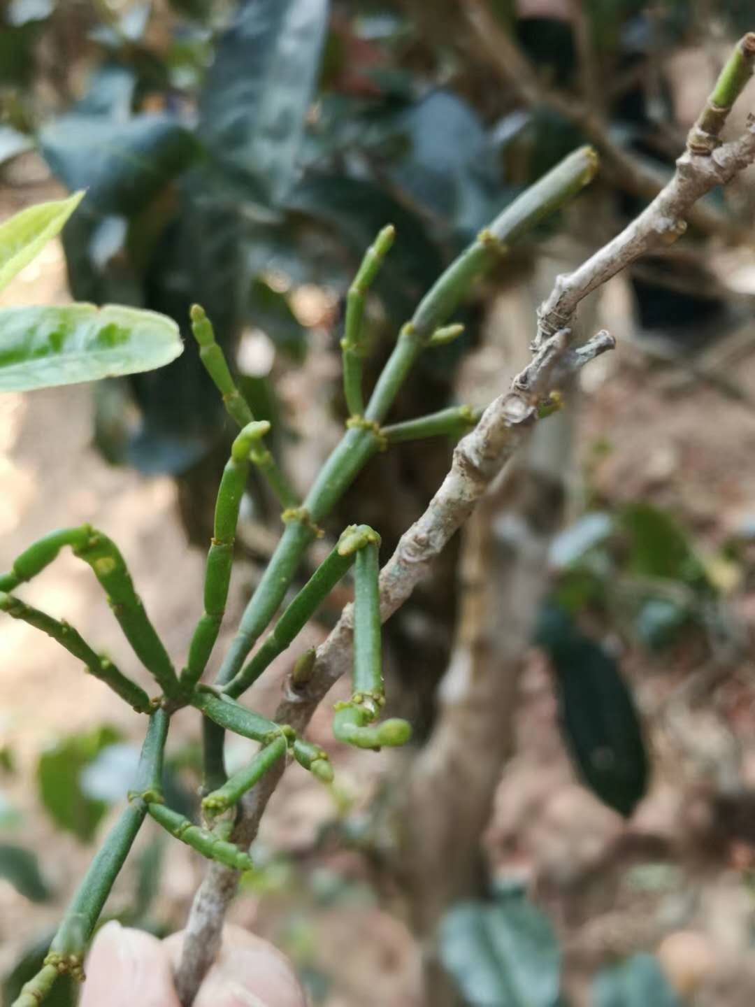 螃蟹腳是一種寄生在樹齡較高的古喬茶樹上的寄生物,長得像螃蟹的腳的樣子,或是形似螃蟹腳的寄生植物,學(xué)名叫扁枝槲寄生,螃蟹腳只是個俗稱,又稱茶精或茶。