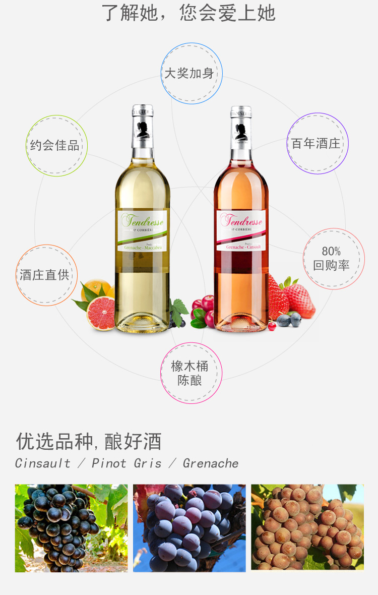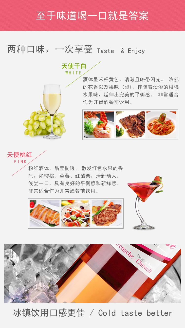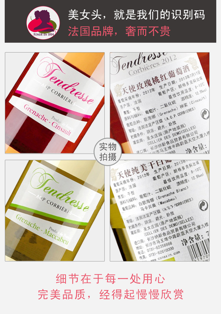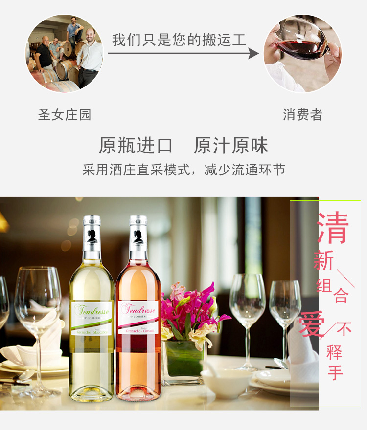 法國天使純美AOP干白葡萄酒 ¥ 380.00 此款選用白歌海娜和馬卡貝奧混合釀制, 酒體呈禾桿黃色,清澈且略帶閃光。 濃郁的花香以及果味(梨),伴隨著淡淡的 柑橘水果味,延伸出完美的平衡感。 非常適合作為開胃酒餐前飲用。 配餐:配生蠔,三文魚,鱸魚,雞肉,龍蝦等海鮮類食物。 葡萄年份: 2012年 罐裝日期: 2013年 產地: 法國 產區(qū): 朗格多克科比埃 最佳飲用溫度: 8℃--10℃ 原料及輔料: 葡萄汁、二氧化硫 酒精度: 12.5%vol 葡萄品種: 白歌海娜(Grenache Blanc),馬卡貝奧(Macabeu) 等級: 法國法定產區(qū)級(A.O.P. CORBIERES) 貯藏條件: 陰涼、避光、臥放 灌裝商: 圣女莊園 凈含量: 750ml 產品詳情 產品屬性