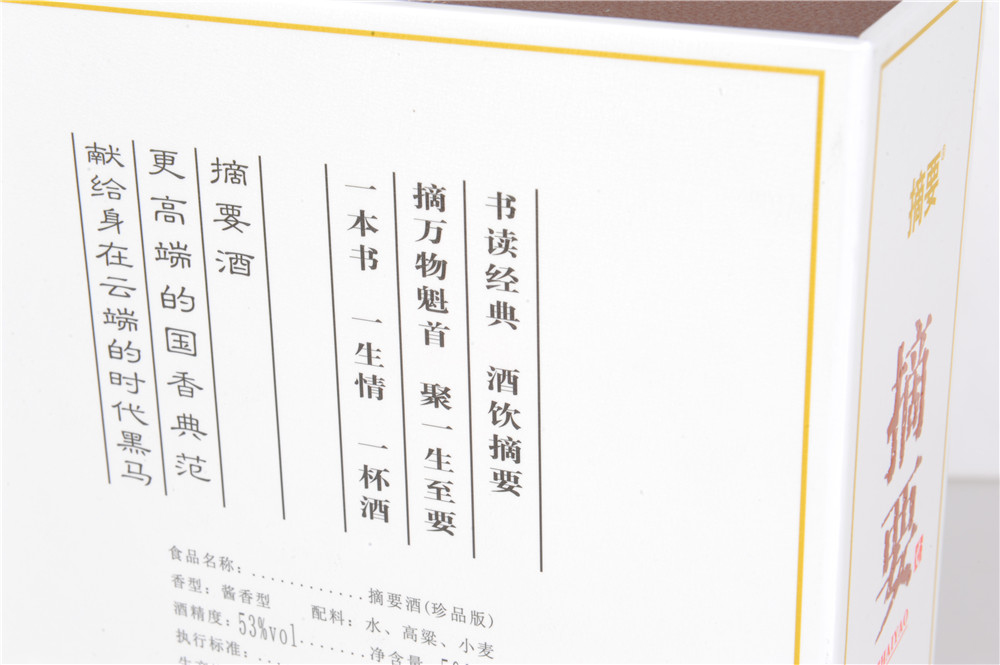 摘要酒(珍品版) ¥ 1399.00 品牌: 金沙 酒精度: 53度 凈含量: 500ml 原料: 水、高粱、小麥 保質(zhì)期: 可長期保存 儲藏方法: 干燥、通風(fēng)、避強光照射 香型: 醬香型 產(chǎn)地: 貴州省畢節(jié)市 生產(chǎn)日期: 2020年 產(chǎn)品詳情 產(chǎn)品屬性 【產(chǎn)品名稱】摘要酒(珍品版)【生產(chǎn)日期】2020年07月【凈含量】500ml/瓶【酒精度】53度