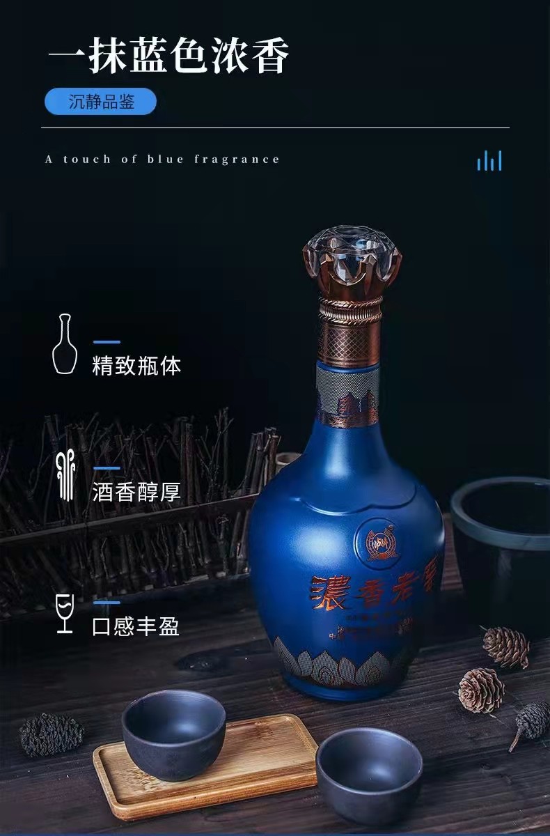 濃香老窖藍色交響酒 ¥ 588.00 品牌: 瀘州老窖 酒精度: 52度 凈含量: 500ml 原料: 水、高粱、小麥 保質(zhì)期: 可長期保存 儲藏方法: 常溫 香型: 濃香型 產(chǎn)地: 中國四川瀘州 生產(chǎn)日期: 20210510 產(chǎn)品詳情 產(chǎn)品屬性 【產(chǎn)品名稱】濃香老窖藍色交響酒【生產(chǎn)日期】2021年05月10日【凈含量】500ml/瓶【酒精度】52度